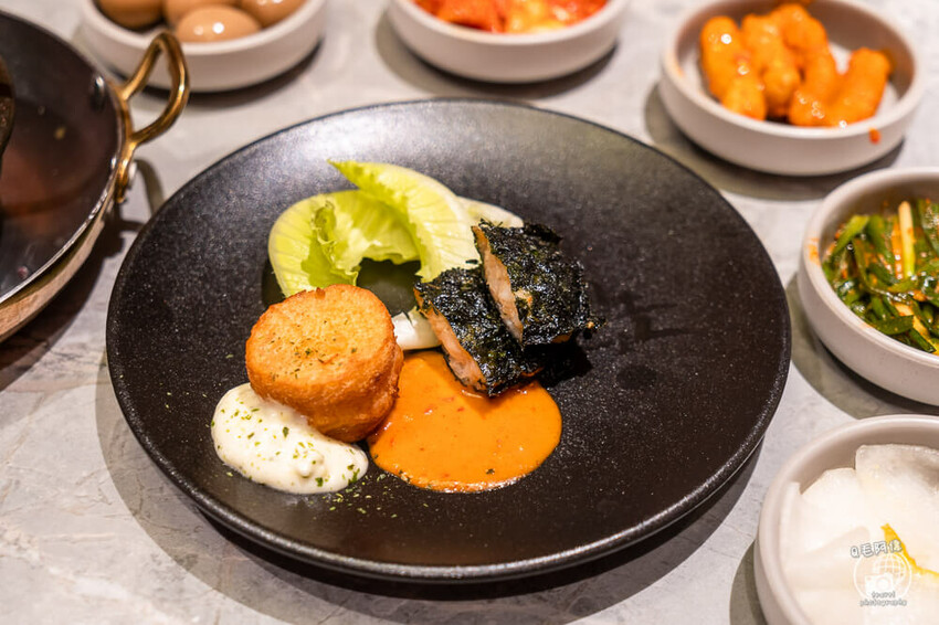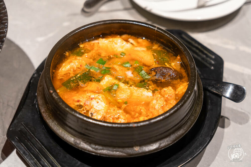 江原道雪蟹膏烘蛋切高紅蛋好吃,但好像是我們放太久太慢吃,加上是鑄鐵鍋的原因,到後面局部可以像三色蛋那樣,挖一塊出來😅