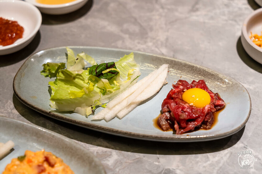 水梨生牛肉意外好吃,吃之前記得均勻裹上蛋黃,吃起來多了蛋香味跟滑順感,牛肉則是很嫩口。
