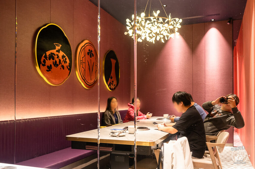 紫木槿韓國烤肉用餐環境非常的棒,寬敞高挑柱體以橘紅為主色,搭配燈光投射,進來就感覺,視野空間感被放大拉遠。