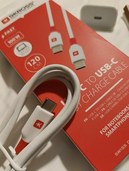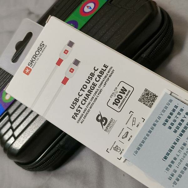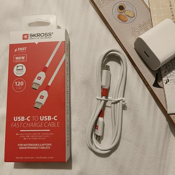 最近隨身攜帶的心頭好,瑞士Skross Type-C to Type-C 100W 快充傳輸充電線,長度也來到1.2m,帥氣的白色、紅色,在攜帶上更顯出他的特別