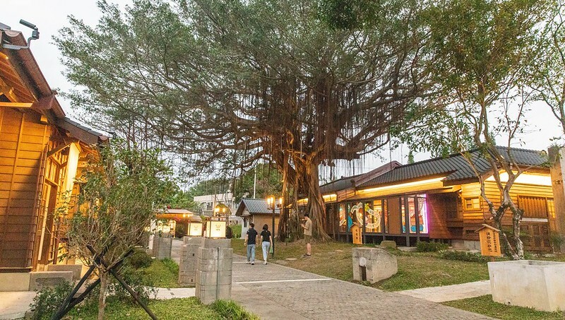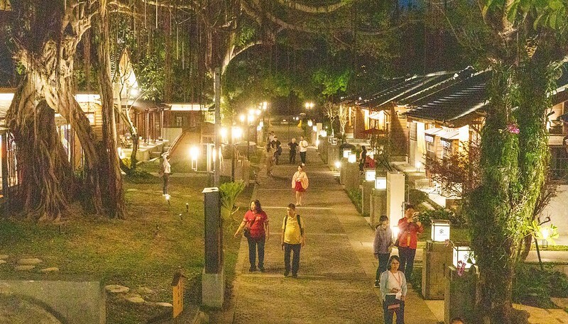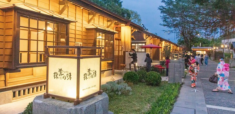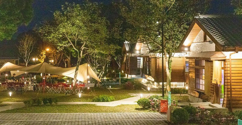 晚上成排的日式建築打上鵝黃的燈飾,呼應著由黃轉藍的天空及微涼的輕風徐徐,一整個美到不行、浪漫到不行。
