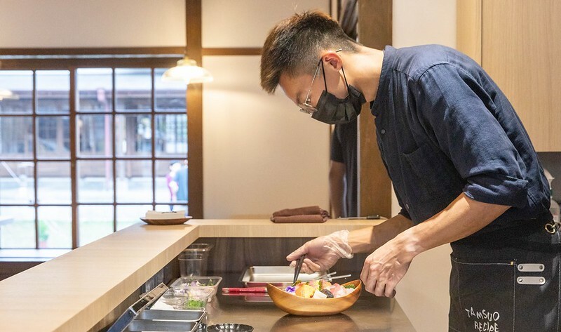探索の味是探索水產科技開的第一個餐飲品牌,提供的是台灣東部的深層海水海鮮,用餐環境是日式庭園+壽司前台風的設計。