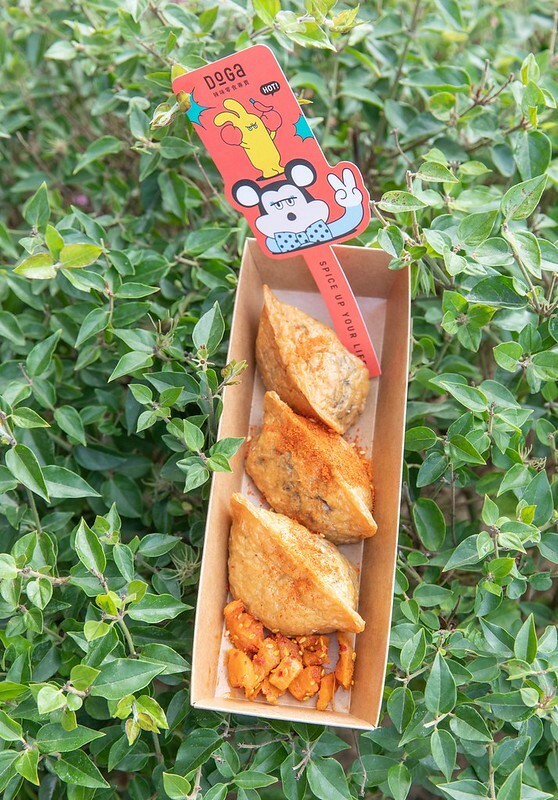 DoGa香酥脆椒(fb粉絲團):這是來自台南安平區的著名伴手禮,使用新鮮辣椒加入白芝麻、花生及豌豆做成,口味多達十來樣的涮嘴小點心。這次結合花蓮著名的花蓮米老鼠做出形象IP,並推出花蓮限定的商品,更特別的是這款以花蓮著名伴手禮麻糬改良的「DoGa豆皮麻糬」,微甜的豆皮搭配香Q紫米麻糬,再撒上他們的DoGa的八味粉及辣蘿蔔乾,甜、鹹、香、辣,挺有趣的味覺層次。