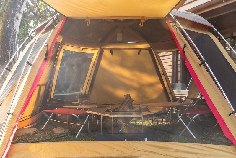 比較特別的是這些體驗也可以在庭園,草皮上放置了Snow Peak用具,野餐風格滿滿。