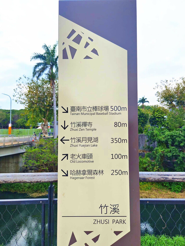 才抵達橋上就看到這個路標,提醒過路人注意:「4/6 (六)11:00~18:00,竹溪街的體育路至健康路段因紅球計畫活動,車輛請改道」,還好我未雨綢繆提前一天來,才省去人擠人之苦
