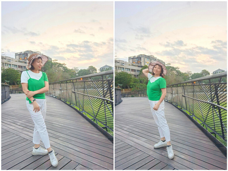 新月形的月竹溪月見橋從這個角度拍最美,不過白天來太熱,建議傍晚來此欣賞夕陽是最佳時間;除了遛狗之外,今天還看到有人來此遛鸚鵡,色彩斑斕的大鸚鵡在月見橋附近飛翔,還引起不少人圍觀呢!