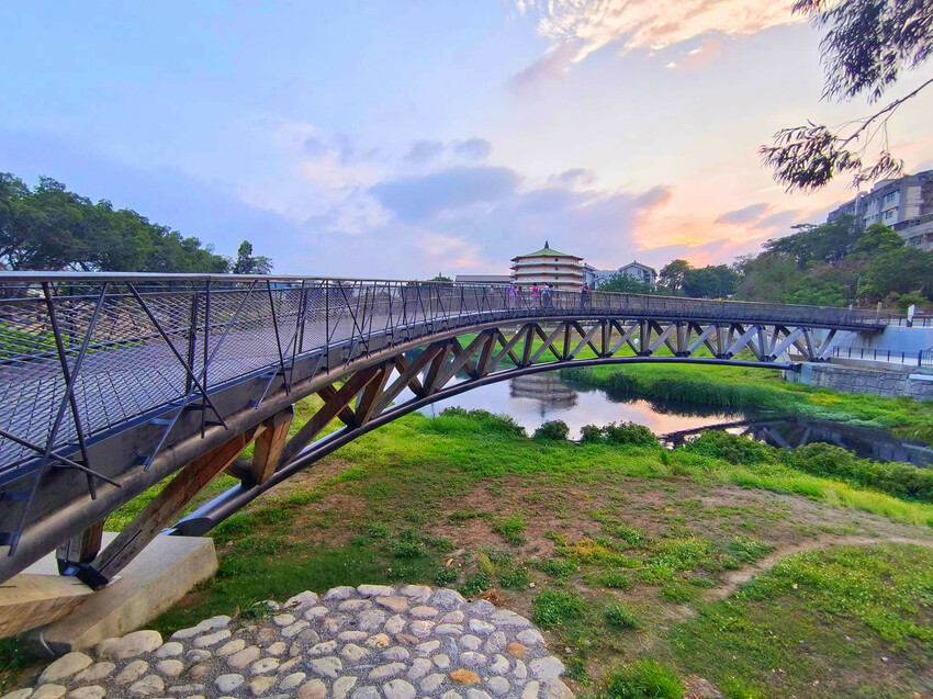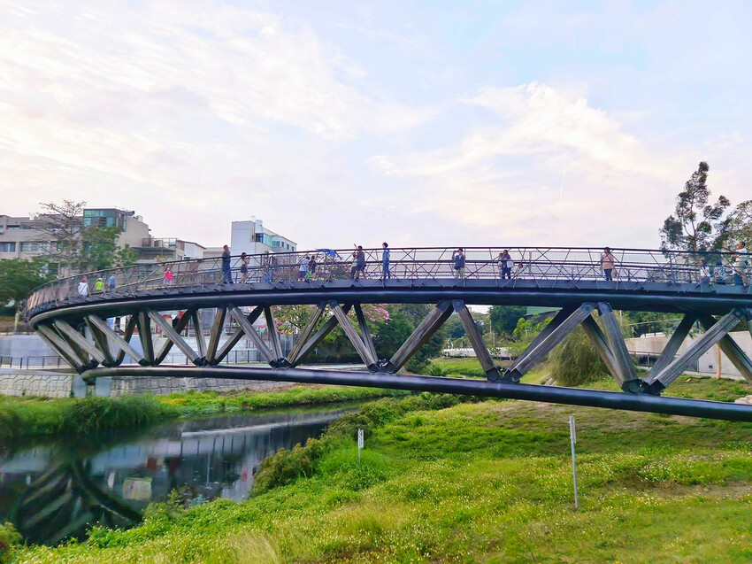 距離鳳凰橋不遠,前面幾公尺就是月見橋了,它的橋體鋼木是以竹的生長型態作為主要的設計概念,遠遠看起來就相當醒目