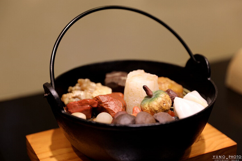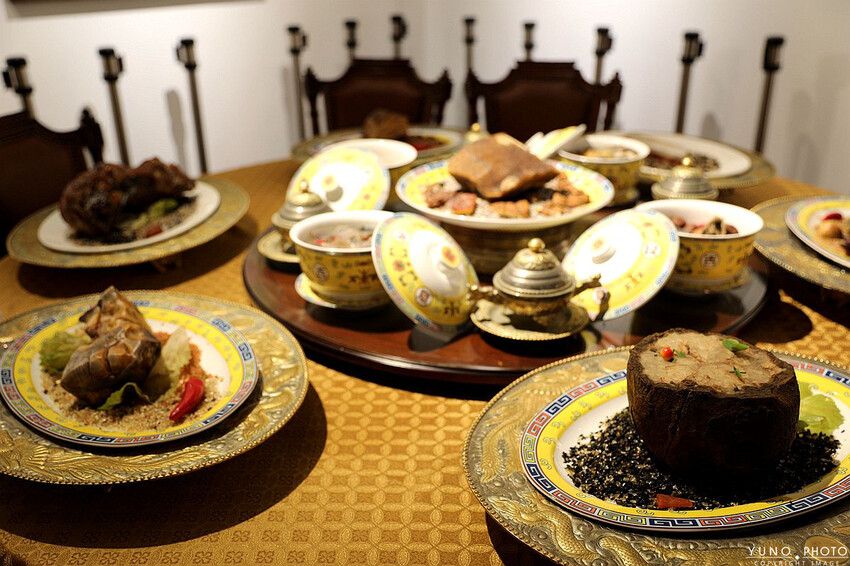 仿照中西餐菜色如紅燒蹄膀、東坡肉、水晶餃、火鍋...等 製作得相當逼真 唯妙唯肖