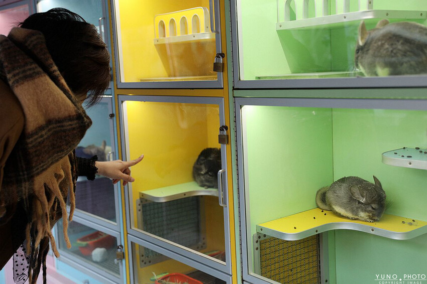 這裏有很多不同種類的龍貓 隔著櫥窗觀看牠們午睡、打瞌睡、洗臉的可愛模樣 感覺超療癒的