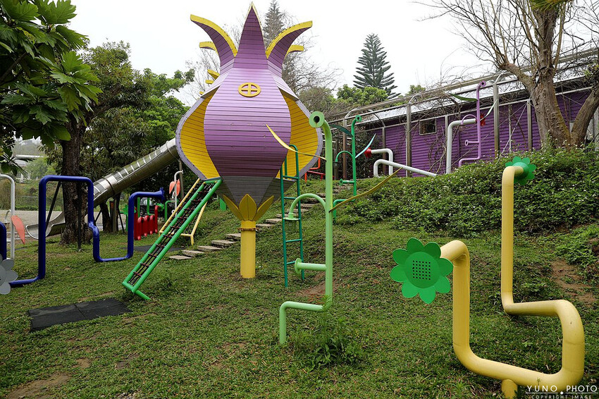 莊園裡有專為小朋友規畫的親子遊戲區 這真是太棒了!儘管佔地不大 但卻擁有溜滑梯、傳聲筒和攀爬設施....等多種遊戲設施