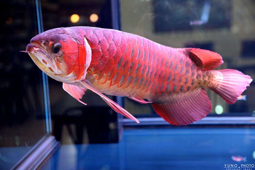 藍光映照下的大魚缸 其中漂亮肥美的紅龍 其鮮豔的色彩和優雅的游姿總是能夠吸引人們的目光