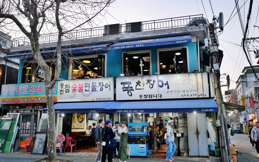 若要說這趟我最想吃的韓國料理應該就是白燒鰻魚了!因為疫情前來這麼多趟還真的沒吃過,這趟來願望清單之一就是這家!最近很紅的風川鰻魚,google評價也很高,雖然觀光客多,但在地人也不少,是真直火炭烤的白燒鰻魚,現點現殺 脆香滑嫩,難怪生意夭壽好。