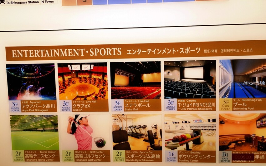 品川王子大飯店提供電影院、游泳池、網球高爾夫球、保齡球場等…這飯店真的大到很狂捏,就是要你乾脆在這裡待著吃喝玩樂順便運動健身購物都在這裡了。