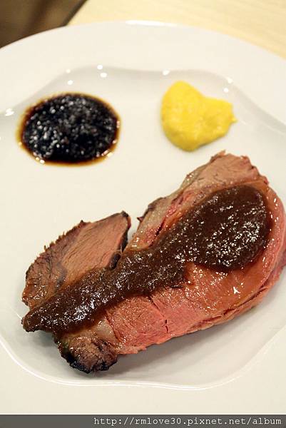 厚厚的一整片烤牛肉,吃起來爽度驚人,這裡也提供三種醬汁