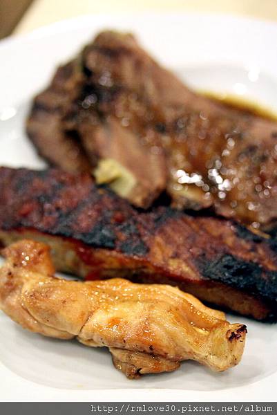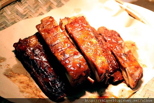 再看看烤豬肋排吧,一樣也是噴香好吃,但肉質偏硬,吃多會比較膩也辛苦一些
