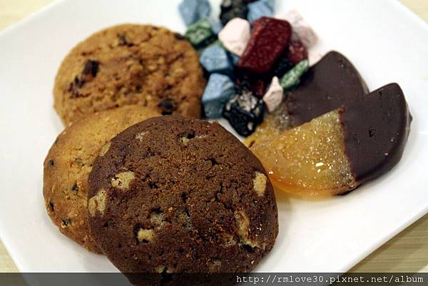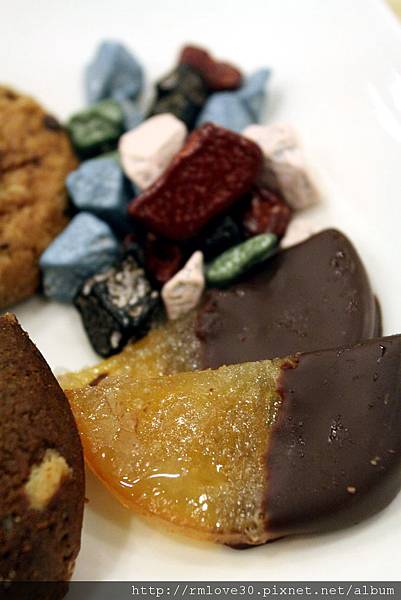 熊猜這是糖漬水果片配上一半的巧克力醬,應該是女孩兒會喜歡的甜點