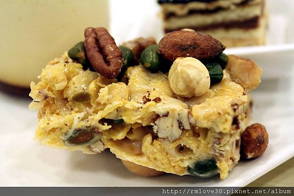 這道忘了名字,但吃起來上面都是滿滿堅果,裡面有點牛軋糖口感