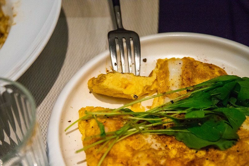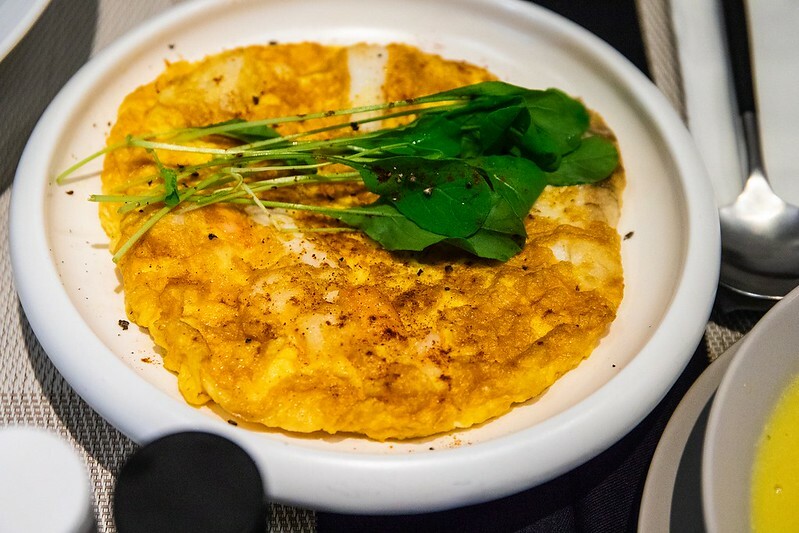 用鬆綿的烘蛋加入新鮮魚貨的美味料理,