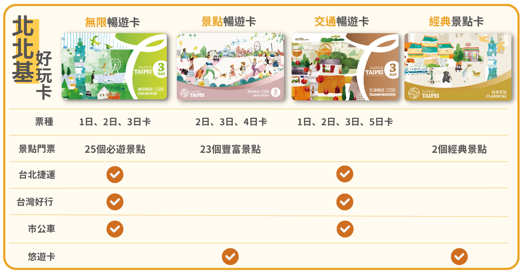 北市府北北基好玩卡Taipei Fun Pass,推出4種暢遊卡,景點、交通吃到飽!