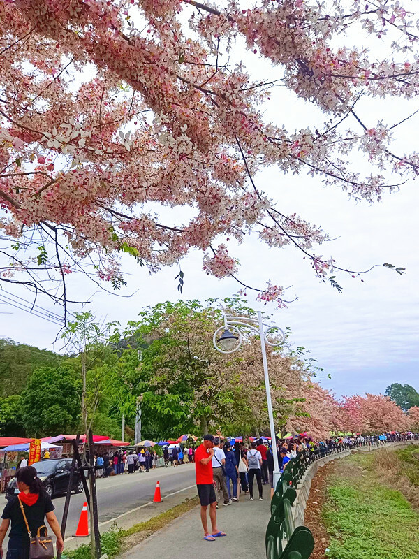花旗木又有泰國櫻花之稱,遠看是滿滿一大片,沒想到近拍的特寫更美,桃紅和粉白的花朵交織更添嬌豔,原來茂密的花旗木姿色半點都不輸櫻花,難怪會被稱為泰國櫻花