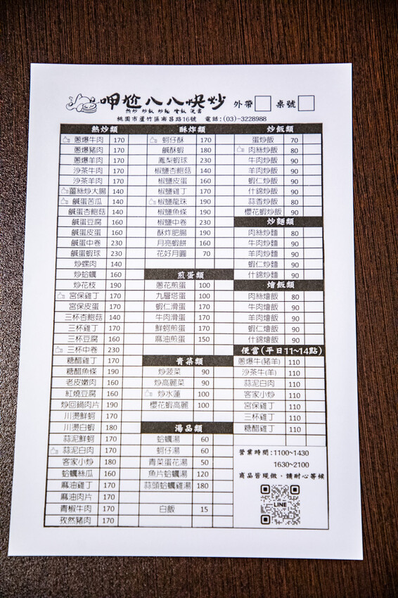 呷尬八八快炒的菜色非常多,目測看下來應該有超過百道,一時之間還真讓人眼花撩亂,如果第一次來不知道點什麼,可以先點有『👍』符號的菜色,價位也很便宜,建議找多一點人來可以吃更多種菜色