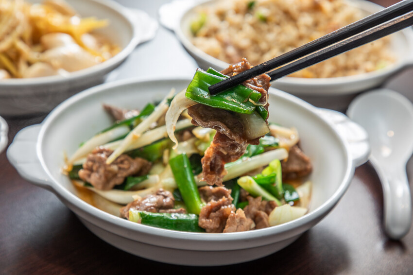 蔥爆牛肉,這裡的蔥爆牛肉不像一般快炒店顏色很深,口味也比較清淡,但基本蔥的香氣跟牛肉的柔嫩都有兼備,而且更能吃到蔥爆的香氣跟蔥的甜香,如果想吃辣也可以點餐註名要加辣唷