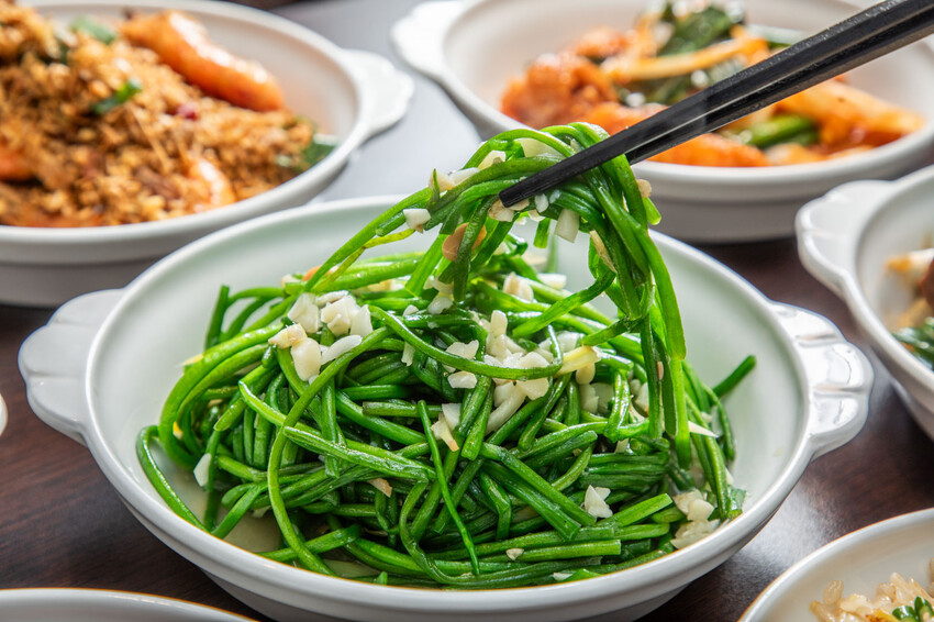 炒水蓮,水蓮吃起來有脆口,份量也頗足,清香甜脆的水璉還帶有一絲蒜香,簡單的炒青菜也能炒出層次風味,真的厲害啊
