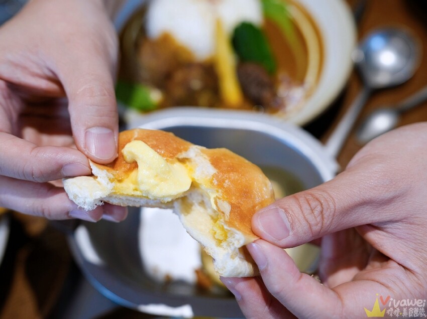 ▲這手做餐包走的是爆漿路線,在吃的時候要小心內餡燙口喔😋