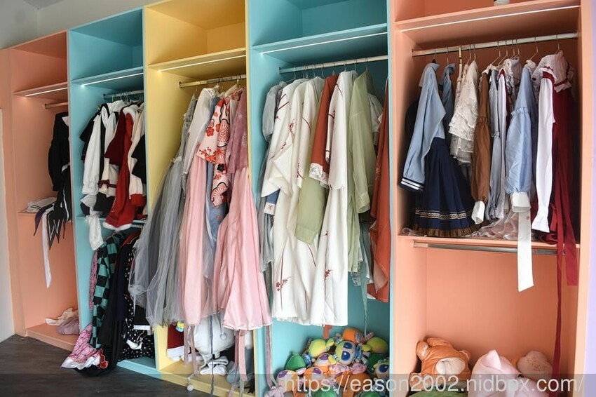 一樓設置「韓式拍貼」半身機包廂,提供多款造型服裝、配飾、頭套,免費使用,往下一看,想不到還有提供兒童專用的可愛變裝服飾,ex.小公主禮服、聖誕裝 等等。