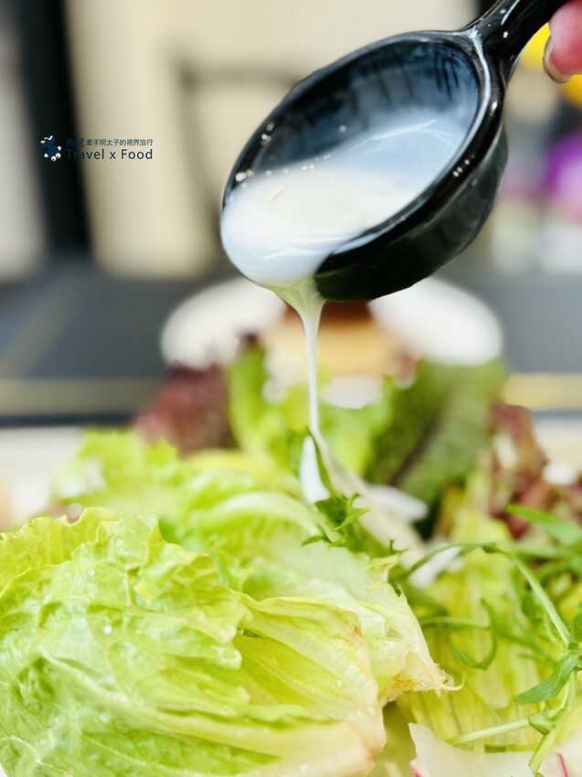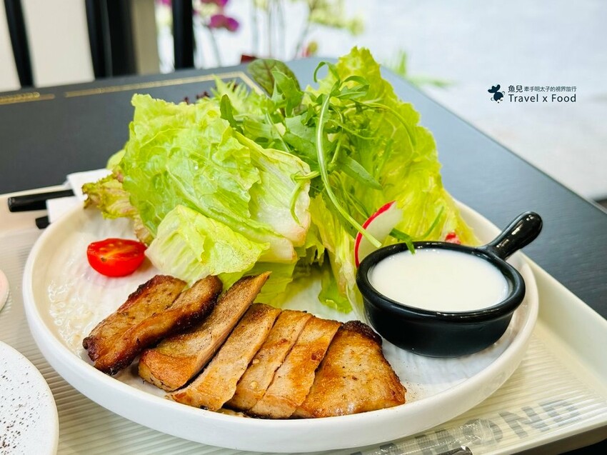 向來喜愛松阪豬料理,自然不會輕易錯過,鹹香略帶嚼勁的切片松阪豬,搭配清爽的生菜,非常合拍。提供和風/凱薩/優格三種沙拉醬,我選了酸甜的優格,開胃又解膩。