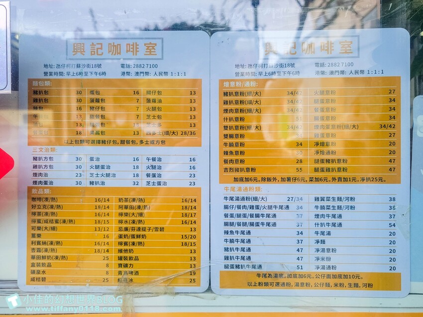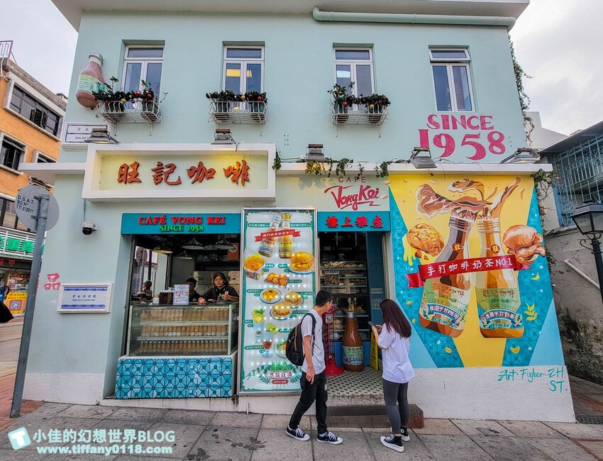 旺記咖啡的外牆看起來就超好拍,主要是賣豬扒包、牛雜、咖哩魚蛋、蛋塔…等,可以內用也可以外帶。世紀咖啡 內用店