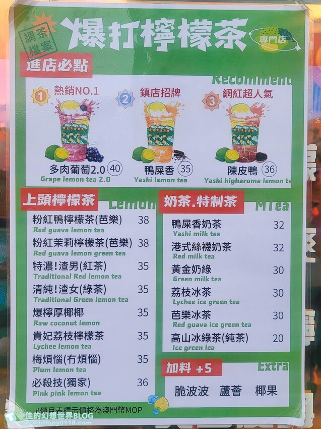 在澳門看到台灣的手搖飲還是滿開心的,但既然是台灣就喝的到的就不選擇在澳門買了。爆打檸檬茶