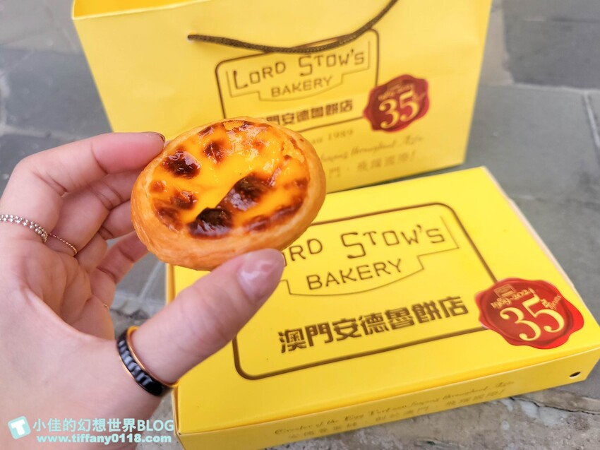 一咬下去外酥內嫩,香氣撲鼻而來,剛出爐的蛋塔真的超好吃蛋也非常油。很多人除了買單顆現場吃以外,幾乎都會買上好幾盒帶回台灣當伴手禮送人,畢竟安德魯蛋塔是澳門葡式蛋塔的代表之一,送禮非常有面子。