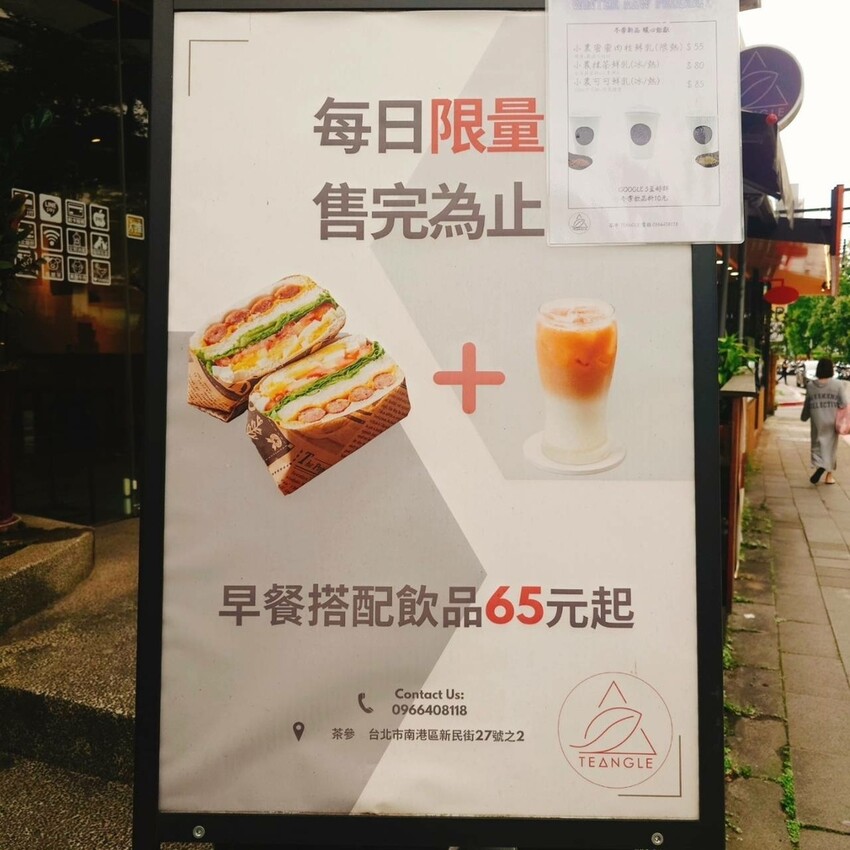 一間非常有溫度的外帶美食/輕食/下午茶/現做三明治的外帶店TEANGLE 茶參,特徵就是靛藍色鐵三角LOGO,食安問題嚴重,大家都知道吃巧也要吃好,這次我來到TEANGLE 茶參,菜單上應有盡有, 選擇性很多 !也有素食餐點的選擇,等於說在南港這樣地處偏遠的美食沙漠裡,想吃輕食不怕吃不到!