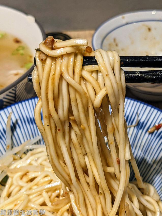 ▲香辣老饕麵(意麵) 70元:我選的麵條是意麵口感較為Q彈,配菜為豆芽菜和蔥段配著麵吃很清爽,本以為看不出紅色辣醬的醬汁應該不怎麼辣,但吃了一口還是覺得有些招架不住,但伴隨而來的是椒麻香氣,真的非常夠味的乾麵,小辣也挺辣的。