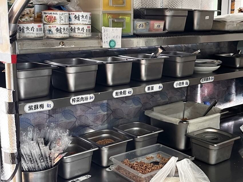 這裡賣的口味還蠻多樣化的也蠻特別的喔!有招牌燒肉有小吻魚有榨菜肉絲有鮭魚鬆