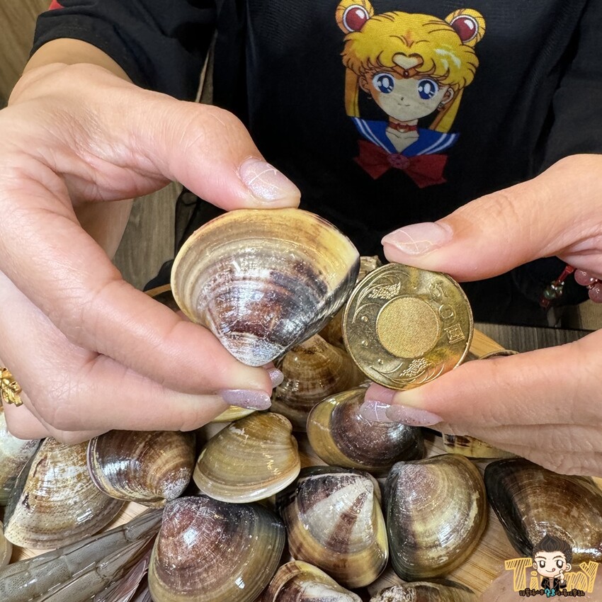 蛤蜊有20顆,大概中等尺寸,跟50元硬幣差不多大喔