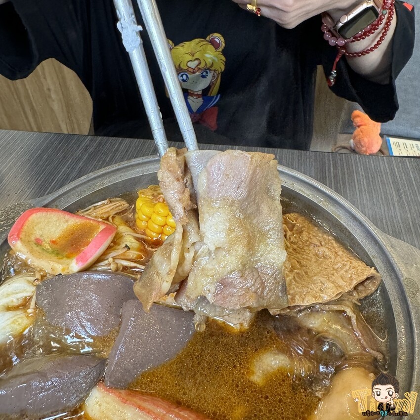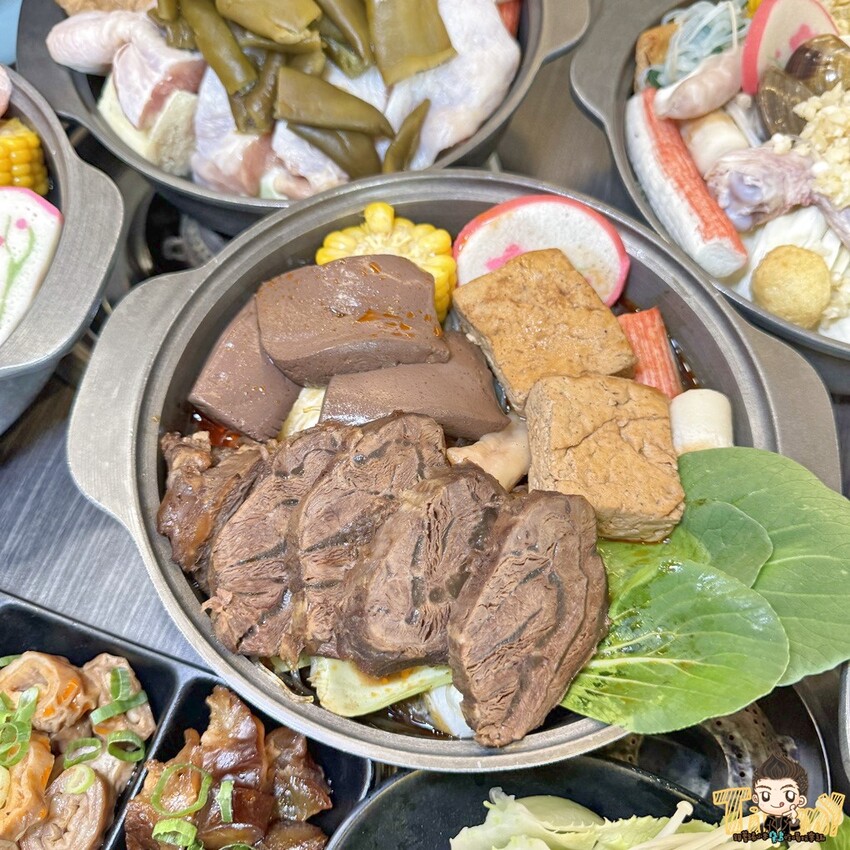 加上鴨血、臭豆腐、高麗菜、金針菇、玉米、蒟蒻、豆皮、冬粉和5種火鍋料,食材相當豐富