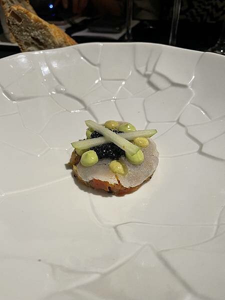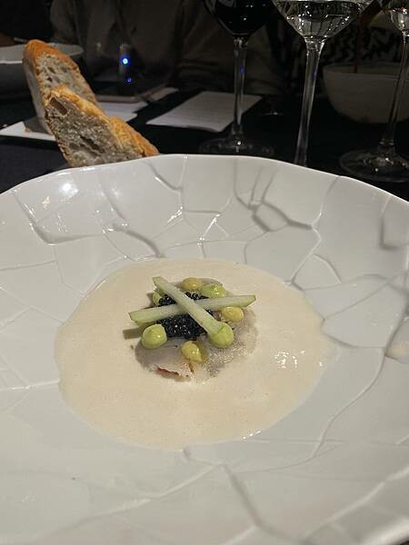 上方有魚子醬以及干貝做搭配