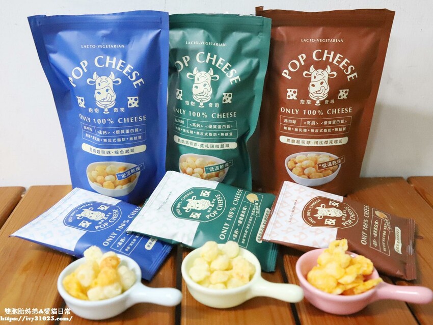 抱抱奇司脆脆起司球POP CHEESE總共有三種口味,依包裝顏色 :