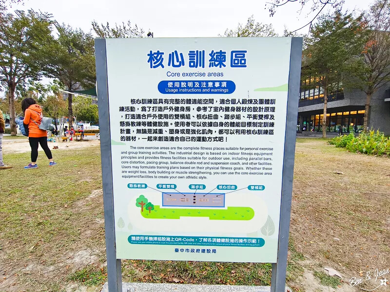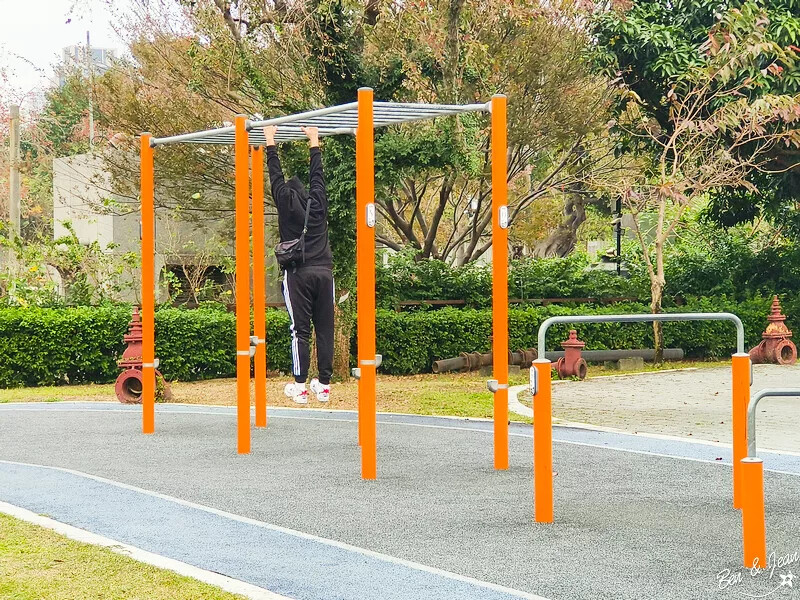 黎新公園的體健設施選的非常有特色,分成核心訓練區、肌力區、互動競技區,一種健身房的概念