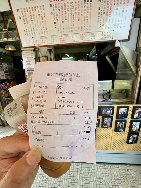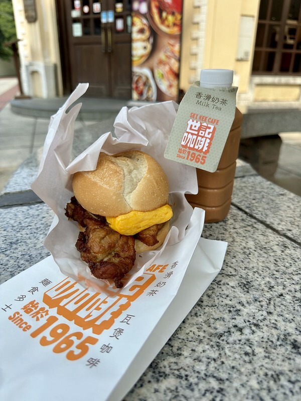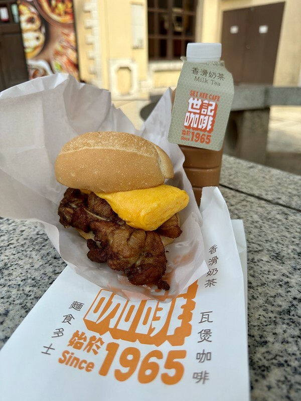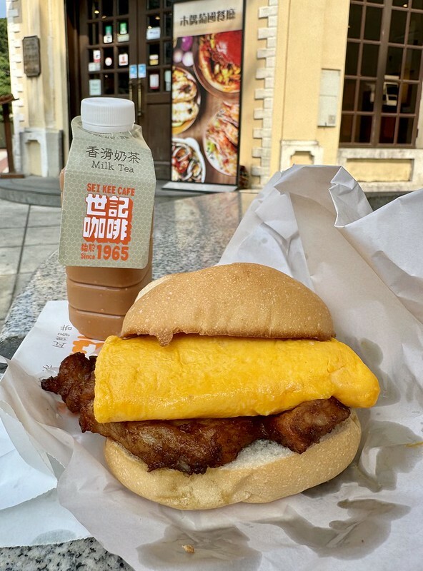 豬扒包厚蛋包50澳門幣,秘製香滑奶茶22澳門幣,