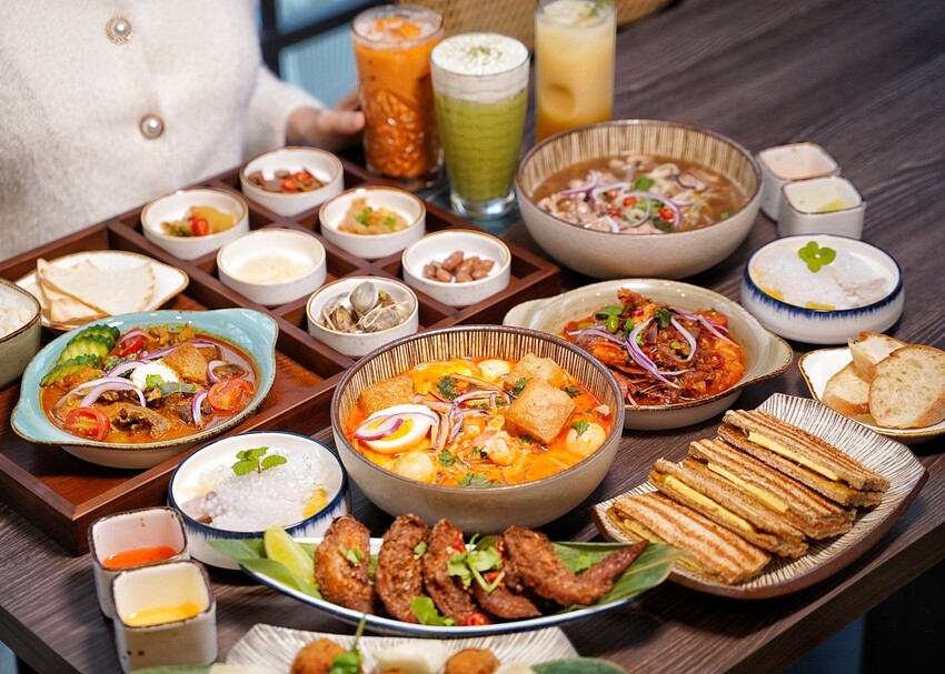 當天最喜歡的餐點之一就是「新加坡海鮮叻沙麵」,橘紅色的湯頭是以蝦膏、多種辛香料、椰奶熬煮出來的,搭配蝦子、花枝、炸豆腐、洋蔥、丸子等等豐富配料,看起來更誘人食欲!湯頭非常濃郁且帶點辣度,但完全不膩口,不禁會讓你一口接一口。