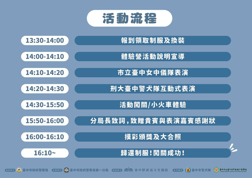 這次活動主辦是台中市政府警察局第一分局、臺中驛鐵道文化園區,