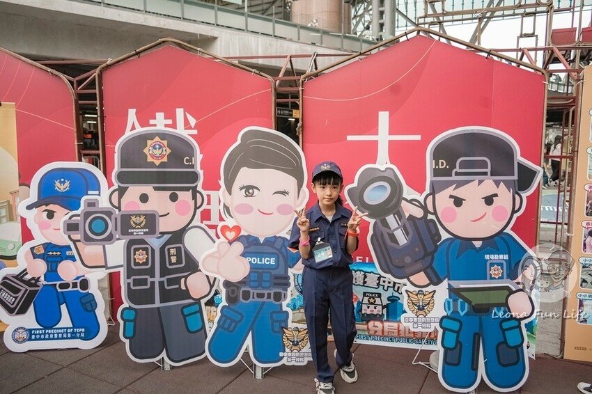 換好制服後就可以跟現場可愛的Q版警察看板一起合照了。