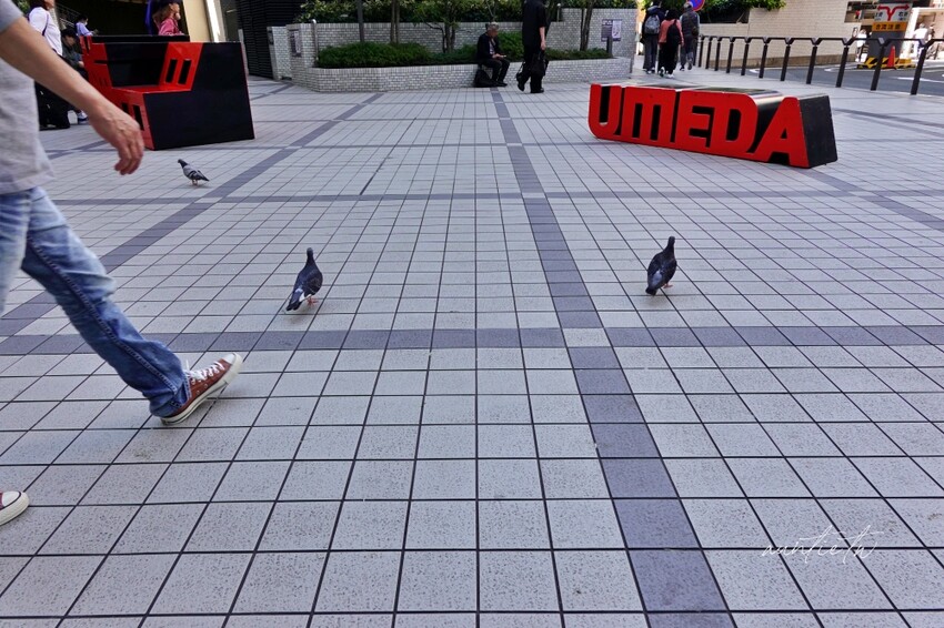 grenier 梅田店的地點就在阪急SUN廣場上,一個小小的三角店面,不是很明顯,不過按照google map的位置找就沒錯,不是在車站的商店街裡,是在戶外的廣場旁,買了千層酥可以在外面廣場花圃坐著吃,附近鴿子很多,都在等千層酥的渣渣掉下來,每隻看起來都胖嘟嘟。