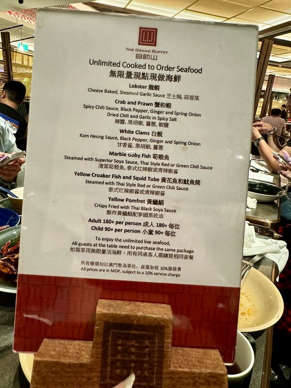 晚餐時段成人加價澳門元180,就「無限量海鮮現點現做」吃到飽,