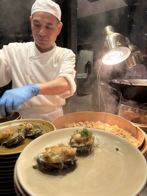 廚師們從蒸籠中拿出蒸好的鮑魚,