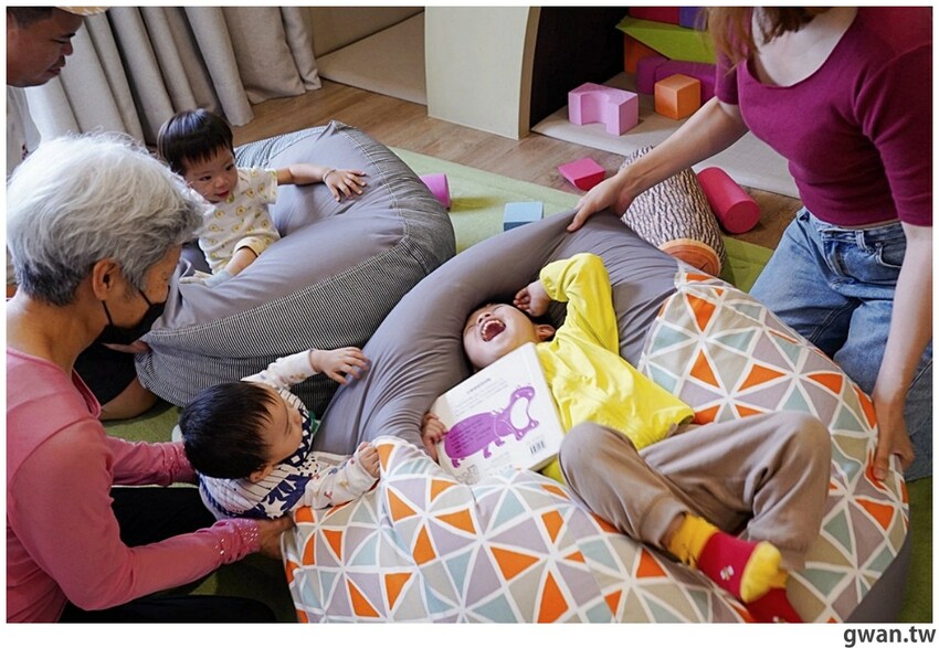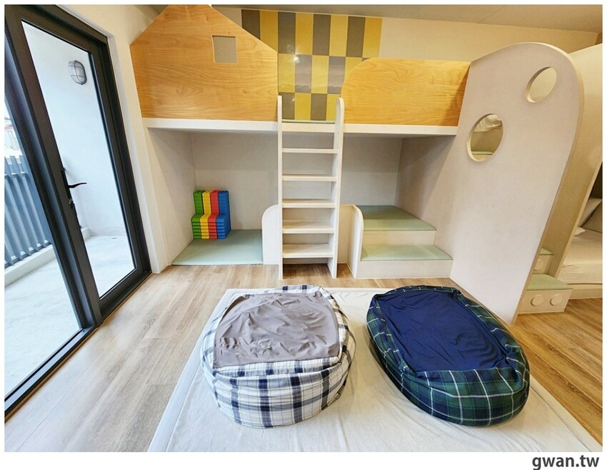 房間裡也有懶骨頭跟軟積木,我們這天入住後就直接待在房裡到晚餐時間,小朋友光在房間裡就玩瘋,玩累了還可以直接躺下來休息超棒
