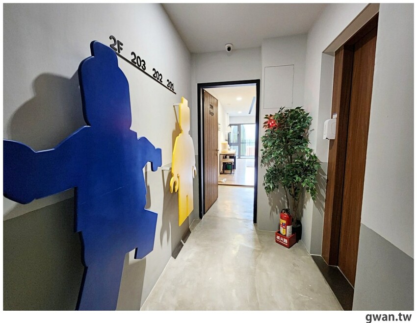 五船民宿體貼旅人還加裝了電梯,我們這次入住樂高親子房,電梯門一打開,可愛的樂高人便映入眼簾,小孩看到也開心極了!